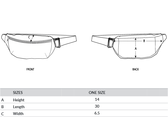 Nylon coil reversed zip, front pocket. Adjustable grosgrain strap to wear over the shoulder or around the waist. . Oeko-Tex certified. Vegan certified. Fairwear Foundation certified.