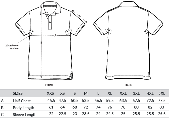 Set-in sleeve. Flat knit rib on collar and sleeve hem. Inside heavy single Jersey back neck tape. Front placket with two buttons in matching body colour. Slit at side seams with heavy single Jersey facing. Single-needle topstitch at shoulder seams. Bottom hem with a narrow double-needle topstitch.